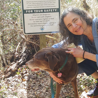 After leaving St. Augustine Dad and Mom took the slow road From St. Augustine, FL to St. Simon's Island, GA. After a ride in the backseat and relaxing in the back seat while Mom and Dad had lunch in a place with healthy bowls, we all went for a walk in Fort Clinch State Park on Amelia Island. After reading the FOR YOUR SAFETY sign, Mom and Dad held onto to me especially near the water so I would not become alligator lunch. The park had many plants, birds and other animals putting me in a paradise of smells but no chasing my ball in the water of course.